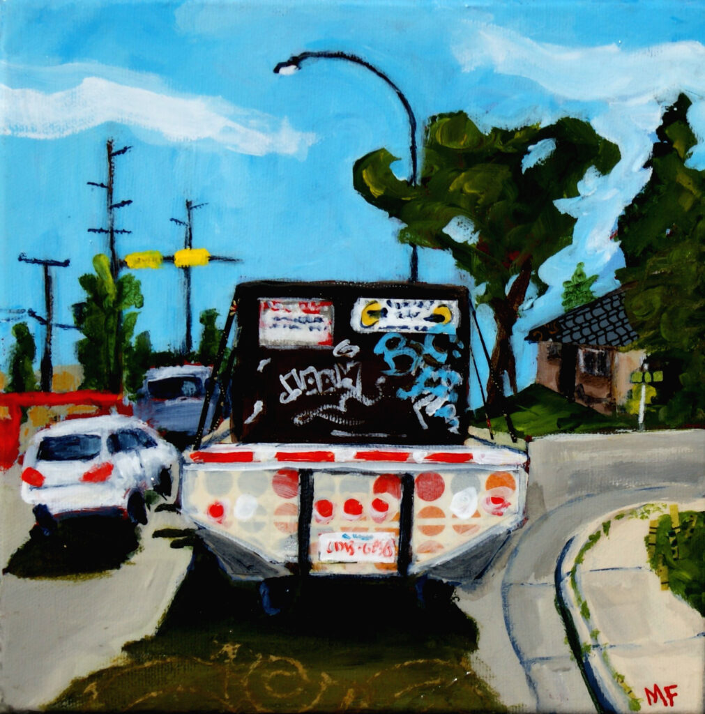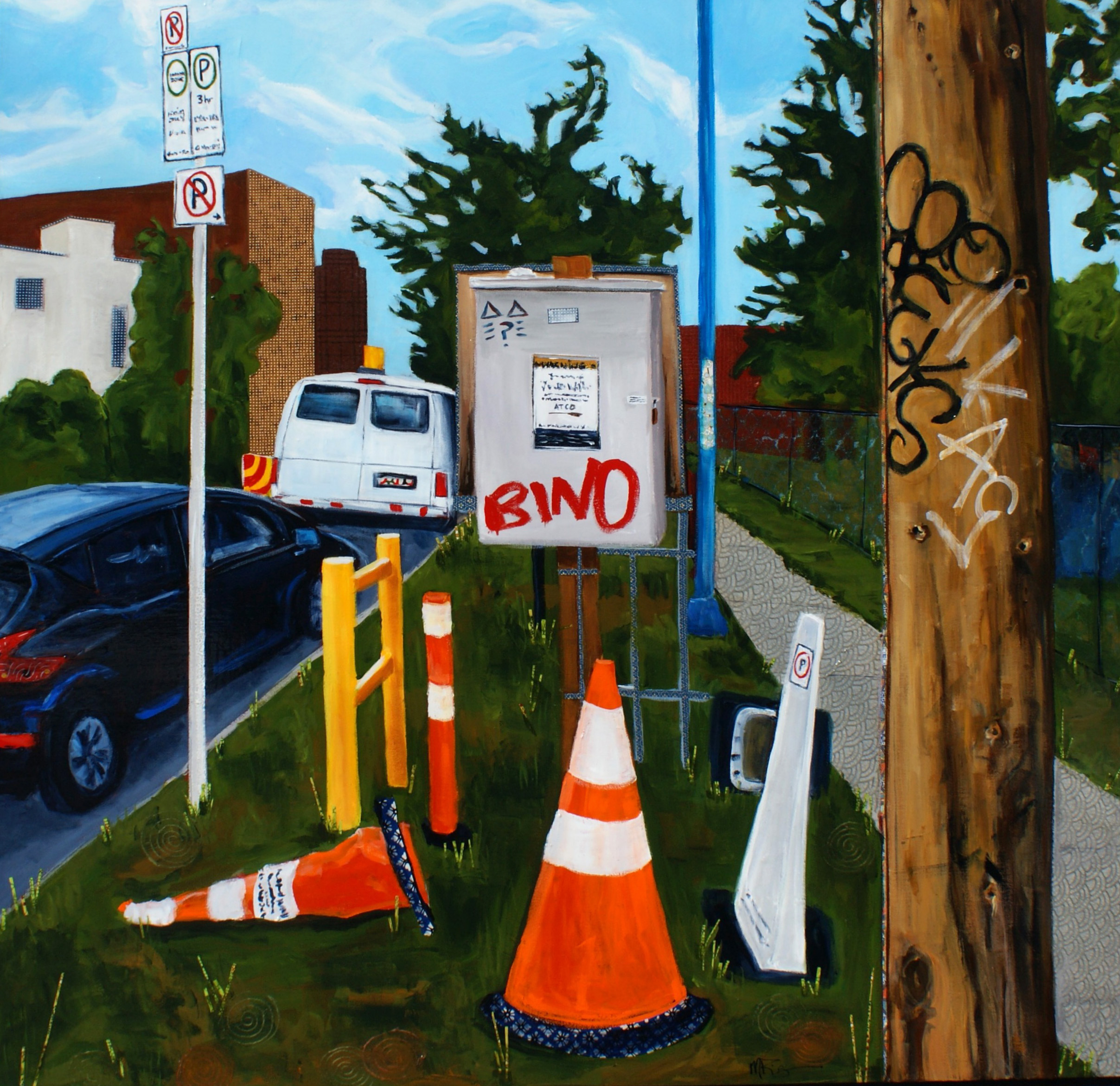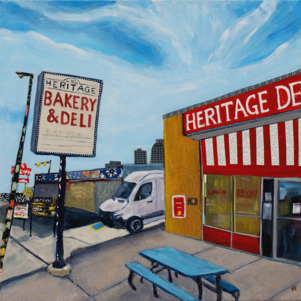 Artwork Spiros PizzaAcrylic & mixed media on canvas 16 x 16" Gallery Wrap $725You Shall Not PassAcrylic & mixed media on canvas 8 x 8" Gallery Wrap $275Street ParkingAcrylic & mixed media on canvas 48 x 48" Gallery Wrap $2950On The LineAcrylic & mixed media on canvas 8 x 8" Gallery Wrap $275 SOLDMoving DayAcrylic & mixed media on canvas 8 x 8" Gallery Wrap $275Golden GazeAcrylic & mixed media 26 x 26" Gallery Wrap canvas COMMISSIONED WORK - SOLDHeritage DeliAcrylic & mixed media on canvas 18 x 18" Gallery Wrap canvas $825Walk This WayAcrylic & mixed media on canvas 10 x 10" Gallery Wrap canvas $325SpicyAcrylic & mixed media on canvas 6 x 6" Gallery Wrap canvas $200Gatewayacrylic & mixed media on canvas 6 x 6" Gallery Wrap canvas $200Garbage OnlyAcrylic & mixed media on canvas 6 x 6" Gallery Wrap canvas $200 SOLDPayphoneAcrylic & mixed media on canvas 10 x 10" Gallery Wrap canvas $350Bookstore (Zapallar)Acrylic & mixed media on canvas 8 x 12" Gallery Wrap canvas $325 SOLDUrban Sprawl - reprisedAcrylic & mixed media on canvas 16 x 16" Gallery Wrap canvas $495Overhead Lines - reprisedAcrylic & mixed media on canvas 12 x 16" Gallery Wrap canvas $495I Want CandyAcrylic & mixed media on canvas 16 x 12" Gallery Wrap canvas $750EmpanadasAcrylic & mixed media on canvas 12 x 12" Gallery Wrap canvas NFSHydrant (reprised)Acrylic & mixed media on canvas Framed 16 x 24" $675Orange Trash Can (reprised)Acrylic & mixed media on canvas 15 x 18.5" Framed $895 SOLDRural Mail (reprised)Acrylic & mixed media on canvas 18 x 26" Gallery wrap canvas $875 Got Wood?SOLD Acrylic on canvas 10 x 18.5" Gallery wrap canvas $445Fenceboards with FlowersSOLD Acrylic on wood block 5 x 8" $125Cherry BlossomSOLD Acrylic on wood block 6.5 x 8.5" $175Bumpy AlleySOLD Acrylic on canvas 10 x 10" Gallery wrap canvas $295Backyard HorizonSOLD acrylic on wood block 5 x 8" $125Alley ViewSOLD Acrylic on canvas 16 x 12" Gallery wrap canvas $375Alley Flowers (reprised)Acrylic & mixed media on canvas 12 x 16" Framed $650Sunnyside SchoolCOMMISSION - SOLD Acrylic on canvas 35 x 23 Framed $1000Matching TowelsSOLD Acrylic on wood block 6.5 x 8.5" $185BonfireSOLD Acrylic on wood block 4 x 6" $205Beach CanopySOLD Acrylic on wood block 7 x 9" $145Wire WorksSOLD Acrylic on wood block 4 x 5.5" $245Downtown BoundSOLD Acrylic on wood block 8.5 x 6" $355BubblesSOLD Acrylic on wood block 5.5 x 8" $255BrickSOLD Acrylic on wood block 8.5 x 6 Framed $355Wood Ya Look at That!SOLD Acrylic & collage on wood block 6 x 8" Framed $265Trash Can Trio (reprised)SOLD Acrylic & mixed media on canvas 8 x 10" Gallery wrap canvas $265Kensington Corner (reprised)SOLD Acrylic & mixed media on canvas 8 x 10" Gallery wrap canvas $295Drive Thru View (reprised)SOLD Acrylic & mixed media on canvas 18 x 10: Gallery wrap canvas $575Urban EvergreenSOLD Acrylic & mixed media on canvas 12 x 16" Gallery wrap canvas $375 Potties in the Park (reprised)Acrylic & mixed media on canvas 23 x 19" Gallery wrap canvas $715Tri-Glen CentreSOLD Acrylic & mixed media on canvas 30 x 36" Framed $1500Sunlit LaneAcrylic on canvas 18 x 24" Framed $810Sunshiney DayAcrylic on wood block 7 x 9" Framed $375Cobblestone WalkAcrylic on wood block 6.5 x 8.5" Framed $295 FirestoneSOLD Acrylic on wood block 4 x 6" Framed $255Playa DaysAcrylic on canvs 11.5 x 19" Framed $650Underpassacrylic & mixed media on canvas 10 x 10" Gallery wrap canvas $325ShrimpSOLD Acrylic & mixed media on canvas 10 x 10" Gallery wrap canvas $475Blue Door (Chicken on the Way)Acrylic & mixed media on canvas 10 x 10" Gallery wrap canvas $325Tall BoyAcrylic on wood block 5 x 8" Framed $225Sky Blue C-canAcrylic & mixed media on canvas 8 x 8" Framed $265 SOLD Ice, Ice BabyAcrylic & mixed media on canvas 12 x 12" Gallery wrap canvas $425Frosty LawnAcrylic & mixed media on canvas 12 x 18" Gallery wrap canvas $545Sunny Side Street (reprised)SOLD Acrylic & mixed media on canvas 6 x 8" Gallery wrap canvas $225Street Scene (reprised)Acrylic & mixed media on canvas 6 x 6" Gallery wrap canvas $155Silver Shop (reprised)SOLD Acrylic & mixed media on canvas 10 x 10" Gallery wrap canvas $325Beltline AlleyAcrylic & mixed media collage 8.5 x 10" Gallery wrap canvas $275Hey Neighbour (reprised)Acrylic & mixed media on canvas 8.5 x 13" Framed $325Glendale Mail (reprised)Acrylic & mixed media on canvas 12x 21" Gallery wrap canvas $625